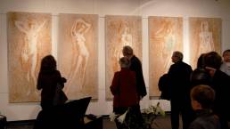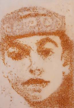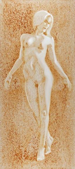 For several years, the versatile artist has been working with rust as a symbol of transience. To this end, he develops new painting techniques in which controlled iron oxidation leaves traces on the painting surface. For individual pieces, he might, for example, embed thousands of rusty nails into the shape of his subject, keeping them moist for weeks to allow the imprint of rust to form on the canvas. Contrasting this visible process of decay, symbolizing all things finite, Rosenzweig incorporates blossoms and nudes representing youth, health, beauty, and the fleeting moment of existence. In doing so, he engages in a dialogue with the tradition of Vanitas painting (Vanitas: empty appearance, vanity), confronting the finite nature of human existence.