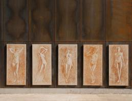 Middle Nudes I-III, 2012, rust on canvas, each 80 x 180 cm, 31.5″ x 71″